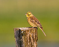 The Yellowhammer, Emberiza citrinella, is a passerine bird in the bunting family Emberizidae, which breeds across Europe and much of Asia. The Yellowhammer was introduced to New Zealand in 1862 and is now common and widespread there. It is probably more abundant in New Zealand now than in Europe where is in serious decline, (in the UK the species fell by 54% between 1970 and 2003). In Europe and Asia most birds are resident, but some far northern birds migrate south in winter. It is common in all sorts of open areas with some scrub or trees and form small flocks inwinter .